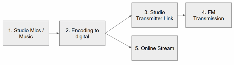 The same stream that is sent to our FM transmitter is also sent to the public via cloud servers, which relay the audio so listeners don’t overload the studio connection.